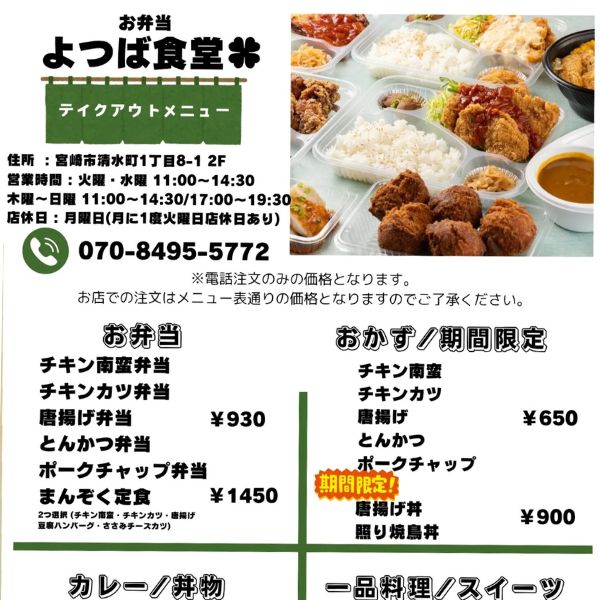 宮崎市清水のランチ・定食ならよつば食堂|毎日通える心温まる定食屋